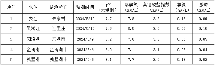 2024年5月蘇州工業園區地表水監測結果