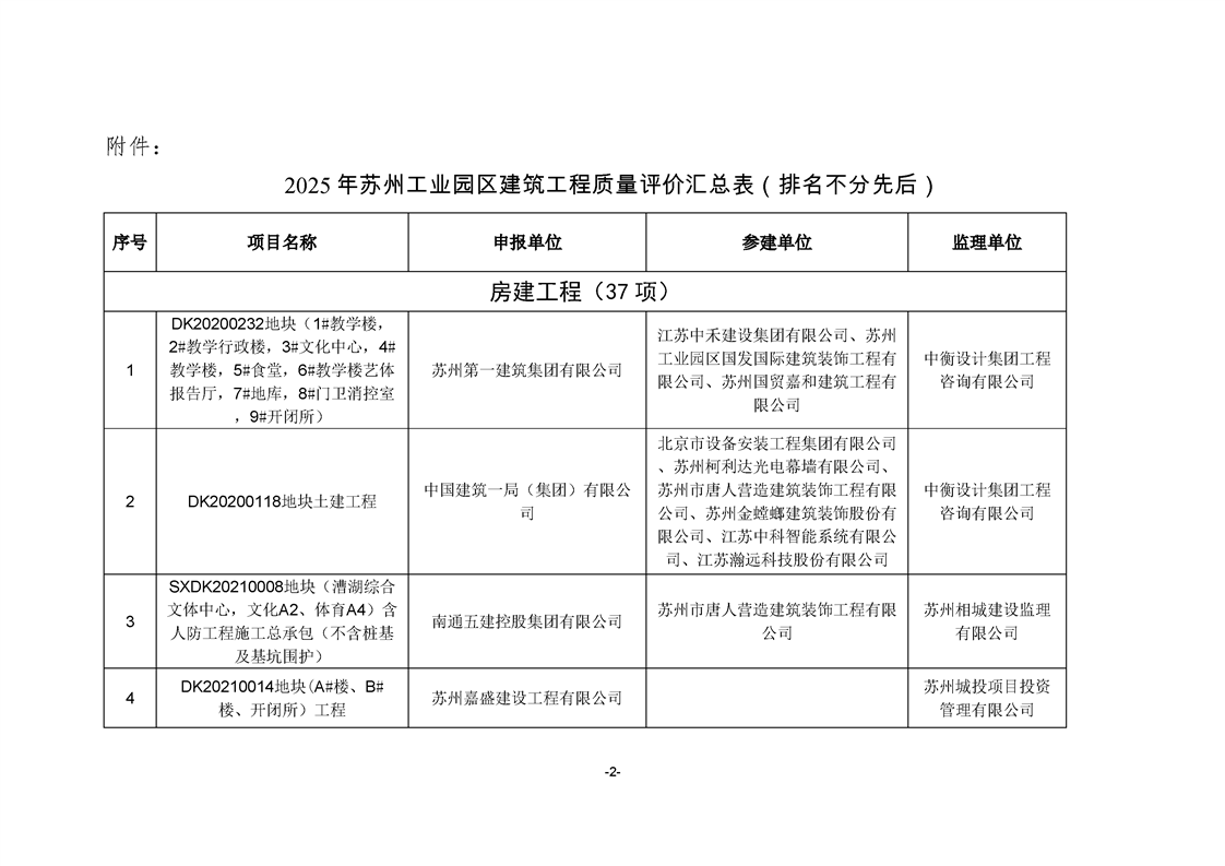 關于公布2025年蘇州工業園區建筑工程質量評價結果的通知