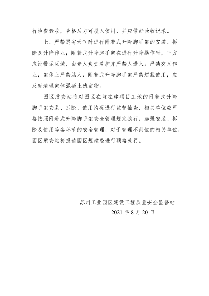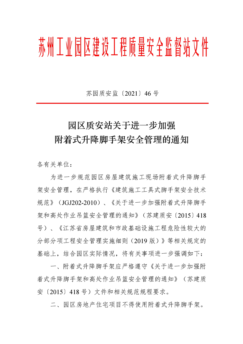 園區質安站關于進一步加強附著式升降腳手架安全管理的通知