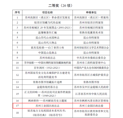 園區(qū)兩部志書獲評江蘇省史志作品優(yōu)秀成果