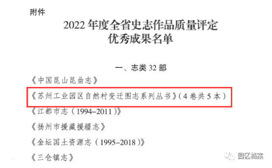 近日,由江蘇省地方志辦公室組織的2022年度全省史志作品質(zhì)量評定結(jié)果揭曉,2部作品獲評江蘇省史志作品優(yōu)秀成果,其中《中國名鎮(zhèn)志· 唯亭街道志》在24部名鎮(zhèn)名村志中名列第一,《蘇州工業(yè)園區(qū)自然村變遷圖志系列叢書》在32部志類作品中名列第二。