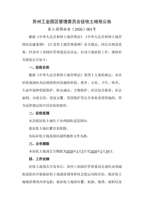 蘇工園預(yù)征告〔2026〕001號--征收土地預(yù)公告