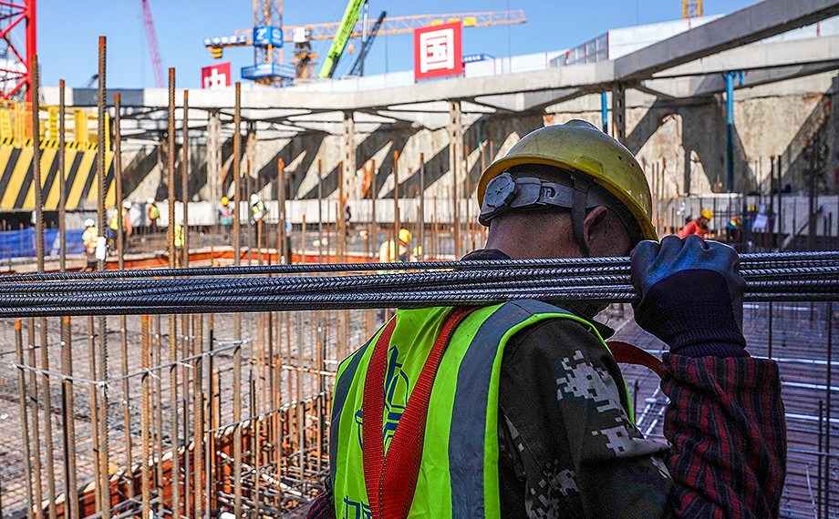 沿著深達十余米的基坑向下望去,工人們正緊張地進行鋼筋綁扎、模板安裝等工作。恒泰城發工程開發部副總監宋劍波指著施工現場介紹:“今年,蘇州東站樞紐項目七大地塊將全面開工。作為項目核心且面積最大的A、B地塊,目前正有序完成負三層頂板施工,計劃在5月底完成A、B區一批次基坑地下結構出正負零,這也將是項目建設重要的里程碑。4月底,我們還將同步推進二批次基坑的開挖工作。”
