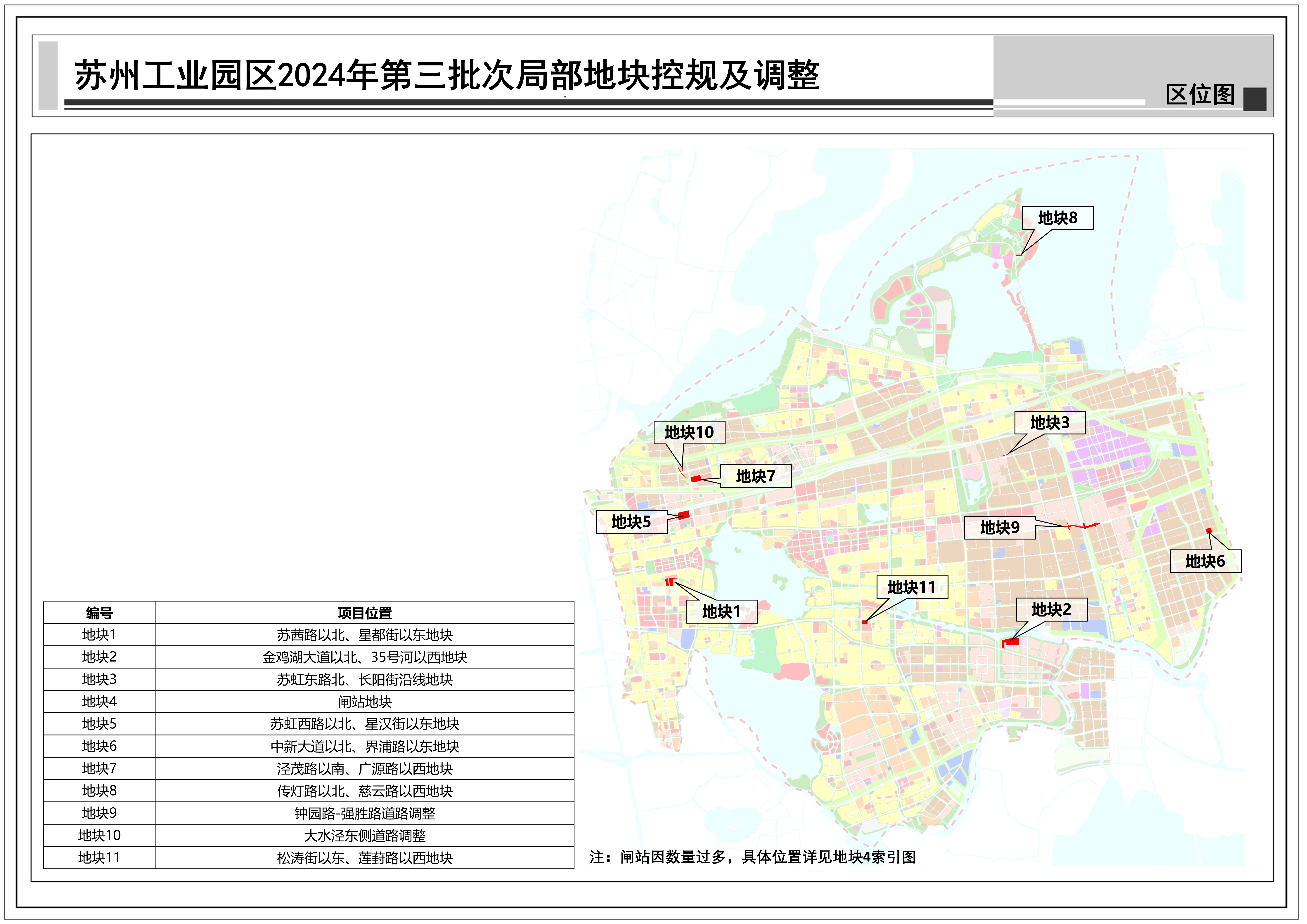 蘇州工業(yè)園區(qū)2024年第三批次局部地塊控規(guī)及調(diào)整:共包括11個地塊,總用地面積約0.52平方公里,詳見附圖區(qū)位圖。