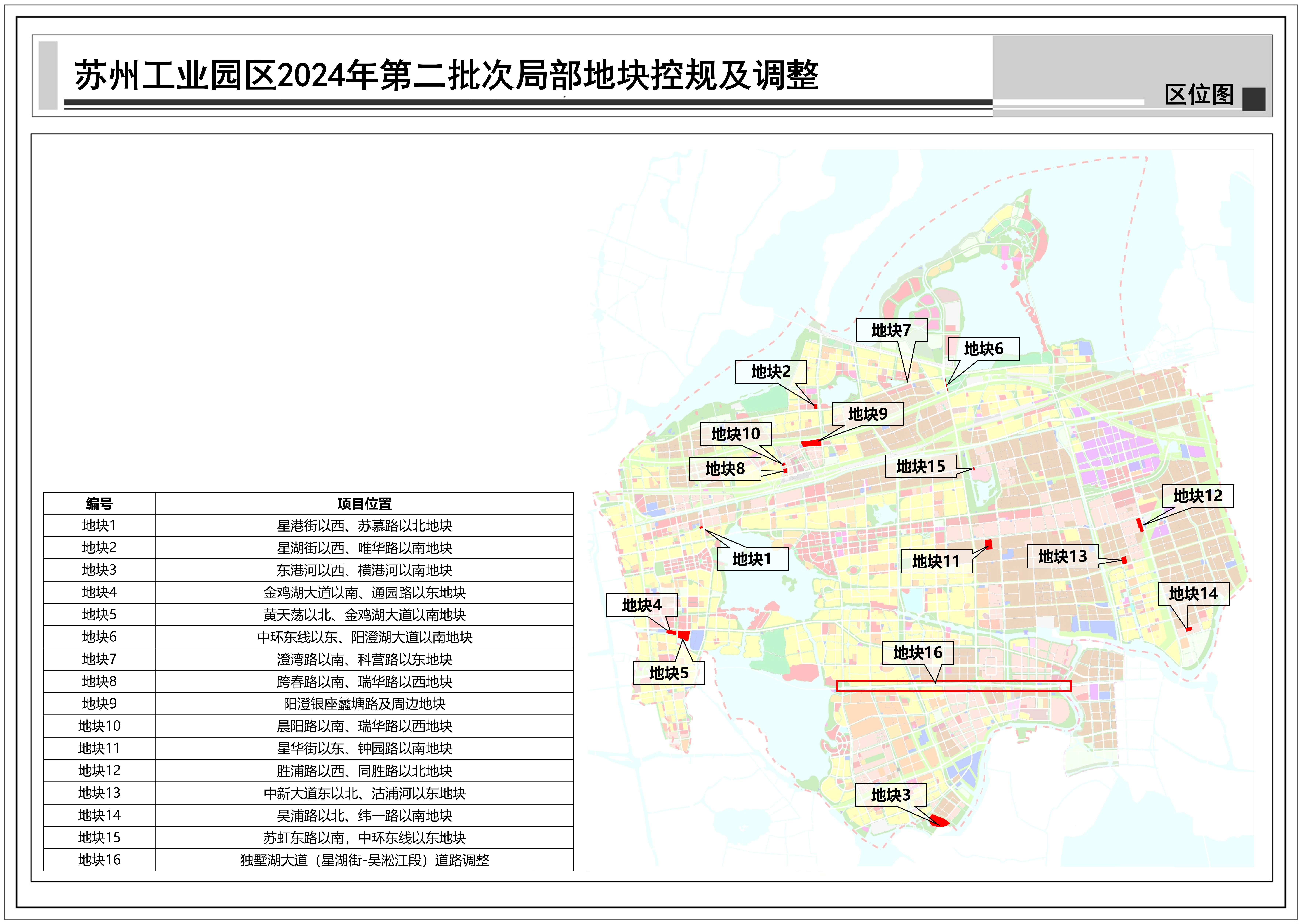 蘇州工業(yè)園區(qū)2024年第二批次局部地塊控規(guī)及調(diào)整:共包括16個地塊,總用地面積約1.37平方公里,詳見附圖區(qū)位圖。
