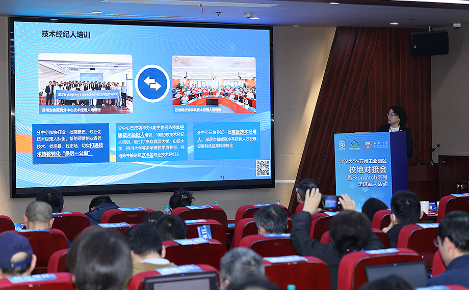 會(huì)場(chǎng)では、蘇州バイオ醫(yī)薬サブセンターが大學(xué)の研究成果移転?実用化ルート、ワンストップサービス體系、イノベーションの仕組み、典型的事例などを系統(tǒng)的に紹介し、現(xiàn)場(chǎng)の科學(xué)研究チームが精確なリソースを見つけ、連攜の道を広げるための明確な指針を提供した。また、武漢大學(xué)からの10件の優(yōu)良バイオ醫(yī)薬プロジェクトは次々とロードショーを行い、オルガノイドチップ検査、先端醫(yī)療機(jī)器、漢方薬のイノベーションなど最先端分野をカバーしている。