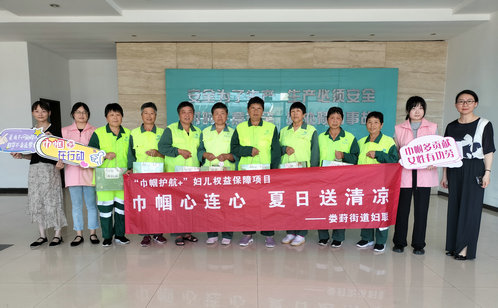 婁葑街道婦聯在雙湖巾幗暖“新”站為外賣女騎手送上一份份裝有防曬冰袖、清涼油、冰涼貼等防暑降溫“大禮包”,同時再三提醒她們要做好防暑措施,不忙時可以來巾幗暖“新”站休息,這里提供了常態化清涼補給。同時,婁葑街道婦聯深入一線,前往婁葑環衛站慰問高溫下依然堅守崗位的女環衛工,為她們送上清涼解暑的酸梅湯、綠豆湯等飲品。