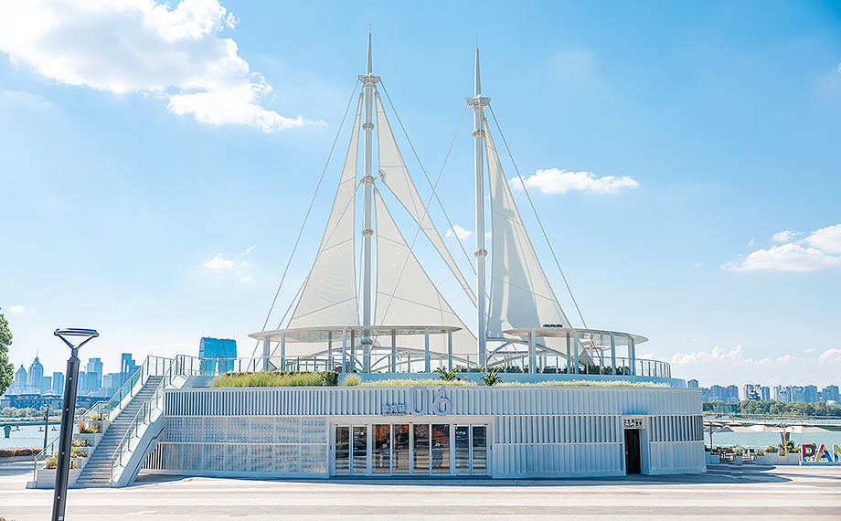 在開發(fā)建設(shè)30周年之際,園區(qū)積極以新載體撬動(dòng)經(jīng)濟(jì)“新引擎”。金雞湖驛站改造是環(huán)金雞湖區(qū)域綜合提升工程中的重要舉措。其中,金雞驛06館位于望湖角帆船碼頭,緊鄰金水灣棧橋,定位為集水上運(yùn)動(dòng)、餐飲和公共服務(wù)為一體的綜合服務(wù)設(shè)施。驛站頂部設(shè)有巨型帆船雕塑,與湖邊停泊的點(diǎn)點(diǎn)帆船,構(gòu)成了時(shí)尚美麗的城市風(fēng)景線。