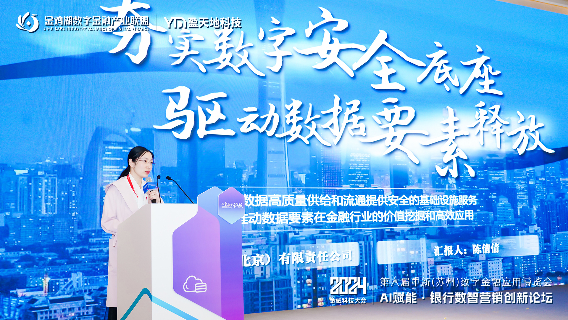 金電信息科技(北京)有限責任公司高級商務經理陳倩倩以多維度的視角分享了《夯實數字安全底座,驅動數據要素釋放》,聚焦對數據要素市場安全體系建設現狀、數據安全體系建設存在的問題以及展示金融業數據服務平臺。她表示,在未來,公司將持續提升自身的技術水平和服務質量,為客戶提供更專業、更可靠的信息安全服務,為服務金融業貢獻力量。
