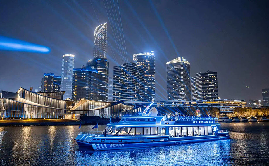 來蘇州工業園區,怎么玩?這次不走“尋常路”,走水路!金雞湖畔,一場以“水”為媒的文旅狂歡正席卷蘇城,園區以獨特視角鋪展“水陸共生”藍圖,為游客帶來別具一格的水上游體驗。科技領航,暢享舒適游船之旅伴隨“蘇州之眼”摩天輪落成試運營的春風,新時代集團精心打造的兩艘“金雞湖號”雙體游船,與右岸新航線一同華麗登場。“金雞湖號”雙體新游船是科技與旅游融合的典范。它參考歐洲熱門游船船型設計,船長31.5米,寬8.3米,額定載客92人,集游覽觀光、休閑娛樂功能于一身。該船采用柴電動力系統,搭載科勒發電機組、719所專利水冷電機和ABB變頻器,兼具速度與靜謐,最高時速達16公里。“相比傳統游船,新游船行駛得更加平穩,而且船上沒有汽油味和噪音?!庇慰蛡兗娂婞c贊。走進游船,一層客艙寬敞舒適,全景玻璃帶來通透視野,金雞湖美景盡收眼底;登上二層露天觀光甲...