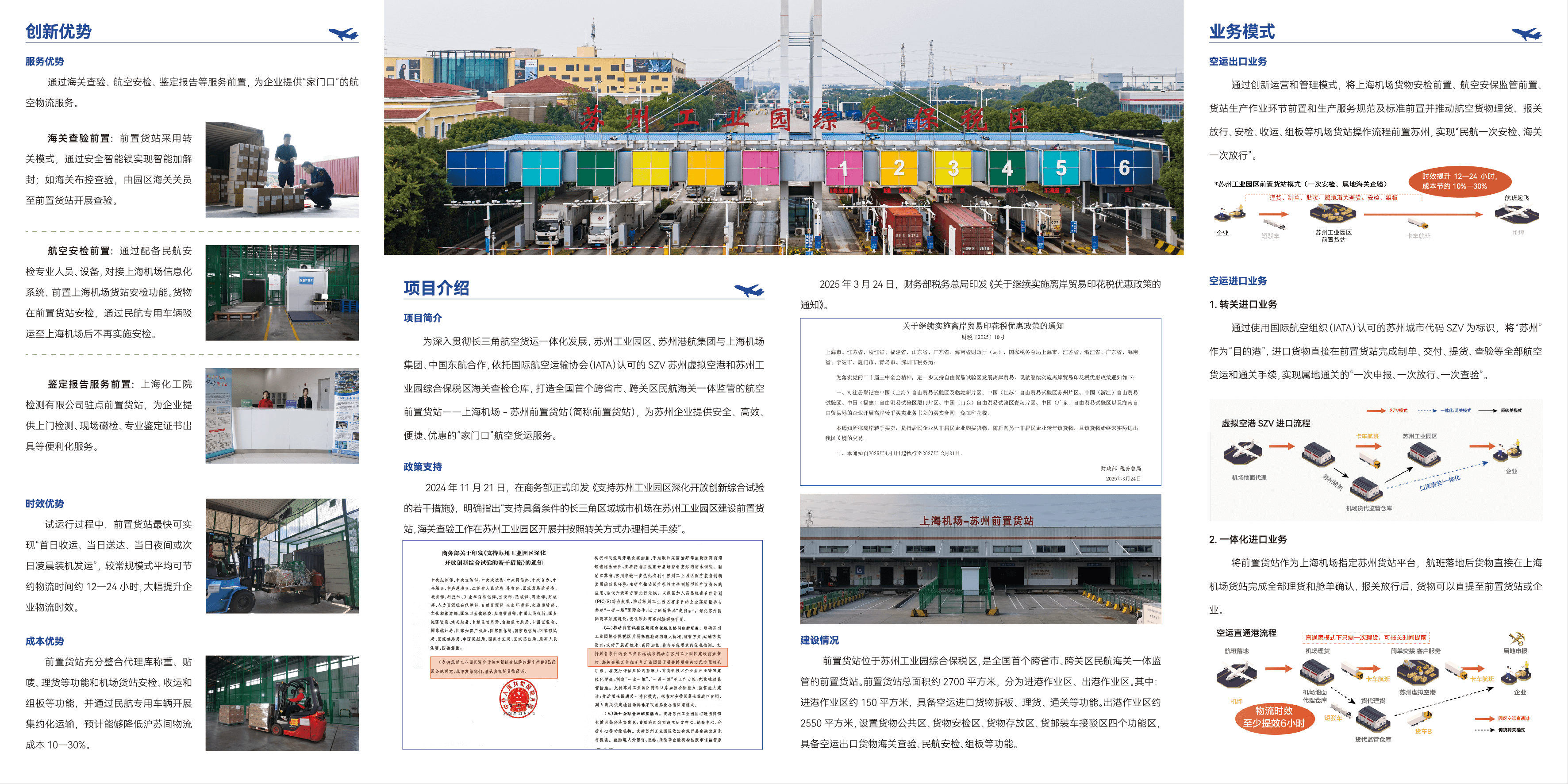 沐浴著四月的春風,蘇州工業園區以改革促開放,再度落地重磅創新舉措。4月7日,全國首個跨省市、跨關區航空前置貨站上海機場—蘇州前置貨站啟用,意味著蘇州企業可以在“家門口”享受到上海豐富的國際航線資源,也為園區進一步優化營商環境寫下“新釋義”。 空運通道“再升級” 作為蘇州開放創新、產業創新、科技創新的前沿高地,園區企業在電子信息、高端裝備、生物醫藥、新材料等領域的國際航空貨運需求十分旺盛。一直以來,園區積極探索、先行先試,推出虛擬空港(SZV)、“空運直通港”、蘇州航空貨運中心等創新模式,有效保障外貿物流鏈供應鏈的順暢穩定。 2024年,園區迎來開發建設30周年,國家出臺支持園區深化開放創新綜...