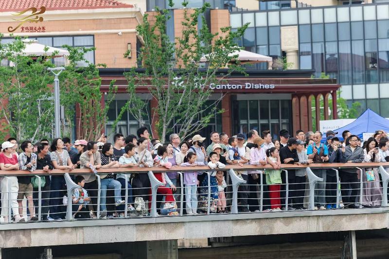 隨著比賽正式開始,金雞湖上百龍爭渡,龍舟隊員們齊心協(xié)力、揮槳如飛,向著終點全力沖刺。岸邊的觀眾也被熱烈的氛圍點燃,歡呼聲和加油聲一浪高過一浪。