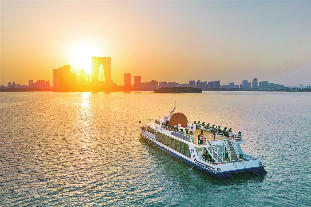以“四湖兩河”自然資源為依托,2024年水上旅游共接待游客超過60萬人次,同比增長96%。金雞湖水上公共巴士、中央河新能源微游艇、金雞湖右岸新航線等特色項目層出不窮、加速破圈;金雞湖端午龍舟賽、帆船賽等接連舉辦、彰顯活力。豐富的水上文旅產(chǎn)品帶動人氣、聚集商氣,得到央視和人民日報等媒體點贊報道,成為提升園區(qū)知名度、影響力的新名片,豐富城市休閑生活、旅游特色的新亮點。