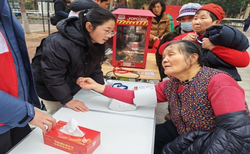 便民服務(wù)專區(qū)內(nèi),磨刀、縫補(bǔ)等貼心服務(wù)切實(shí)解決了居民的日常難題。磨刀師傅手藝嫻熟,砂輪飛速轉(zhuǎn)動(dòng),一把把鈍舊的菜刀、剪刀在打磨下重?zé)ㄤh利;縫紉師傅穿針引線,細(xì)致地為居民縫補(bǔ)衣物、修改褲腳,用巧手彌補(bǔ)衣物瑕疵,贏得居民連連稱贊。除此之外,常熟銀行工作人員搭建起服務(wù)攤位,熱氣騰騰的爆米花香氣四溢,旁邊的糖葫蘆攤子更是點(diǎn)睛之筆,紅彤彤的山楂裹著晶瑩的糖衣,酸甜誘人,引得老人孩子頻頻駐足,香甜的口感驅(qū)散了冬日的寒意;同時(shí),工作人員還免費(fèi)為居民測(cè)量血壓、血糖,細(xì)致詢問身體狀況,耐心講解冬季養(yǎng)生、慢病管理等健康知識(shí),用專業(yè)服務(wù)為居民的健康保駕護(hù)航,將金融溫度傳遞到每一位居民心中。