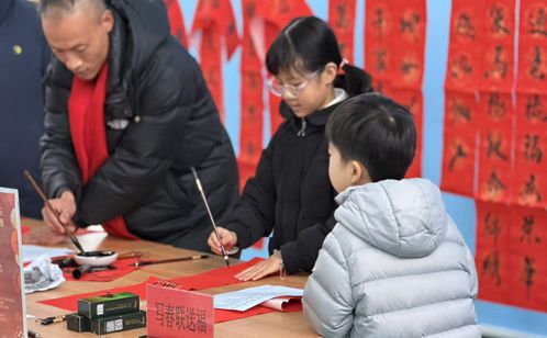 活動室內,長桌鋪開,墨香陣陣。社區邀請的書法老師和幾位擅長書法的老黨員揮毫潑墨,為居民現場書寫春聯和“福”字。一副副寓意美好的對聯,一張張筆力遒勁的“福”字,在筆下流淌而出。居民們圍在一旁,一邊欣賞,一邊挑選著自己心儀的內容。“老師,請幫我寫這幅‘平安二字值千金’!”王阿姨拿著墨跡未干的對聯,笑容滿面。紅紙黑字,傳遞的是最傳統也最真摯的新春祝愿。
