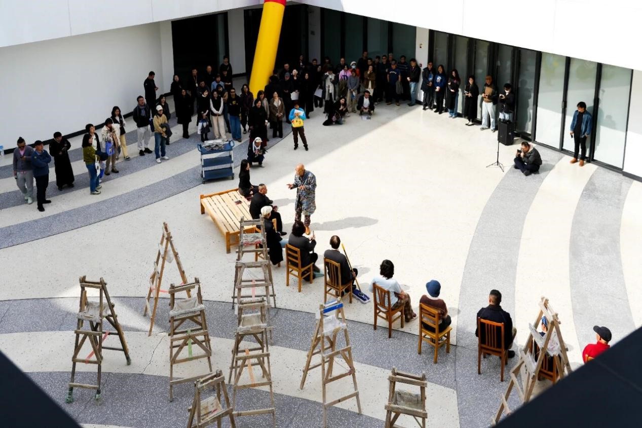 當天,楊重光還在宥愛美術館戶外中庭,帶來特別的一課《一場關于身份的現場實驗》?,F場邀請觀眾親身參與,通過身體表達、材料運用、即興回應等形式,開展一場關于“身份”的集體藝術實驗,讓在場者感知藝術并非專屬特權,而是每個人與生俱來的能力。