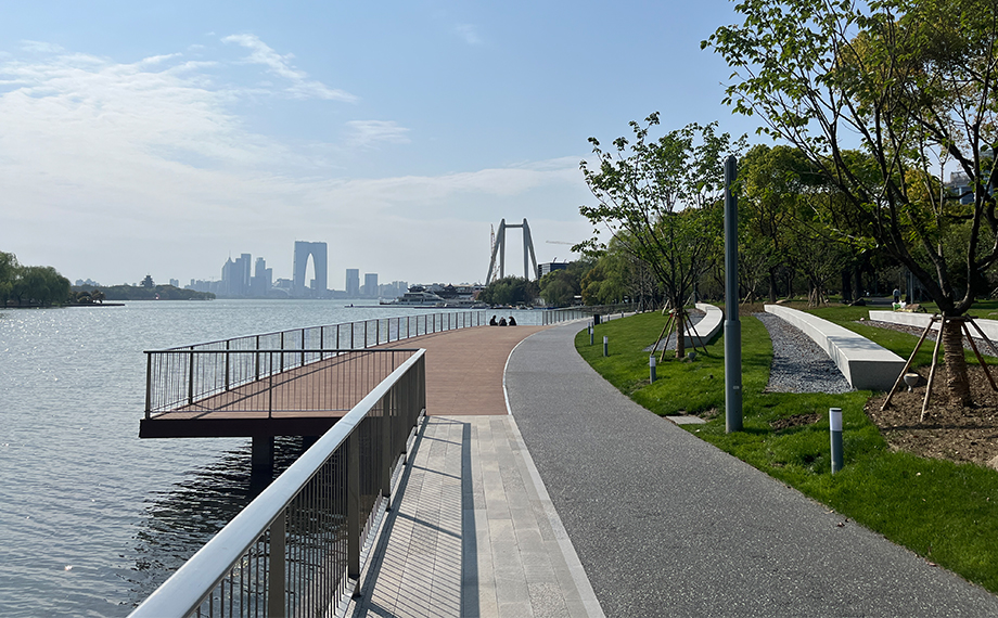 打造公共空間品質,彰顯城市特色和魅力。金雞湖右岸南區景觀改造工程作為右岸提升的重點區域,將打造為商業延伸的共享空間,城市自然綠肺,讓社區生活重歸水岸綠地。項目通過對區域內景觀綠化改造提升、道路廣場鋪裝、人行道板改造、生態池塘水景、濱水舞臺、兒童游樂場、多功能運動場、廊架、照明設施改造等,打造出一個融合商業、休閑、娛樂等多功能的公共空間,不但為市民提供更為舒適、便捷的生活體驗,更提升園區中心區域的環境品質,為園區高質量發展賦能。