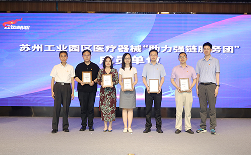 蘇州工業園區醫療器械“助企強鏈服務團”成立,服務團由園區投促委、園區市場監管局、園區市場監管局科創區分局、園區衛健委、蘇大附四院5家單位共同建立,旨在把政府政策、專業服務資源與企業需求有效鏈接,建立聯系更緊、合力更強、質量更高的醫療器械產業鏈條。