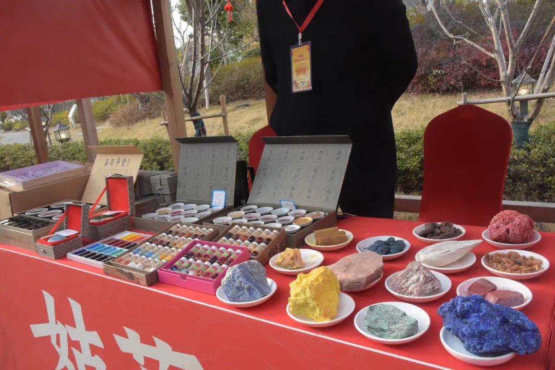 此次大會,張佰林不僅帶來了各色原材料,還帶來了多款針對不同用戶需求的12色國畫顏料,以及印泥、礦石標本等品類的相關產品。現場,他還積極與大家分享國畫顏料制作的工藝流程和產品特色,并邀請有興趣的市民游客去工廠體驗。