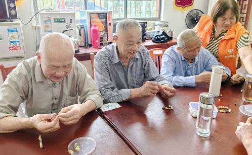 面對銀齡群體精神文化供給不均衡現(xiàn)狀,蓮韻社區(qū)日間照料中心創(chuàng)新打造“藝趣工坊”,推出菩提串珠、水晶花藝、綠植盆栽等手工課程,為長者搭建了一座“精神糧倉”,在創(chuàng)造中重拾生活意趣。在紅色管家志愿者的指導(dǎo)下,一顆顆菩提籽在指尖串聯(lián)成寓意吉祥的珠鏈,晶瑩剔透的水晶花在巧手下綻放出別樣光彩,充滿生機的綠植盆栽在精心照料中煥發(fā)盎然綠意,這些手工項目宛如“生活的調(diào)色盤”,不僅成為疏解孤獨感的“情緒減壓閥”,更以美育浸潤煥發(fā)銀齡精神風貌,推動社區(qū)文化服務(wù)從零散活動向常態(tài)化滋養(yǎng)體系躍升,為精塑“雅趣共生”服務(wù)格局注入鮮活脈動。