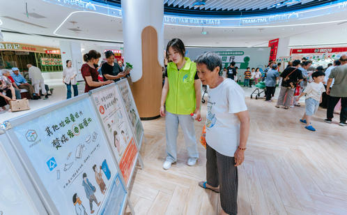 趣味游戲區的創意設計亮點頻出。居民們手持打卡地圖,穿梭于“垃分視力表”“分類大轉盤”“綠色補給站”等八大互動點位,通過趣味測試、知識問答、投擲游戲等方式邊玩邊學。“‘瓶’什么都給我”專區人氣爆棚,居民王阿姨用積攢的飲料瓶兌換了綠蘿,笑得合不攏嘴?!俺峭对偕薄熬G色補給站”和“舊物煥新”專區也深受居民青睞,居民們拎著紙箱、舊衣物排隊兌換環保袋、文具等實用物品,直觀感受到“垃圾是放錯位置的資源”。游戲化體驗不僅提升了垃圾分類知識的趣味性和互動性,更讓居民在輕松愉悅的氛圍中掌握分類技巧、提升環保意識。針對還不太熟悉如何正確分類的居民,志愿者則一對一講解垃圾分類知識,實現寓教于樂“零距離”。此外,志愿者們還同步宣傳倡導“光盤行動”“限塑”“減少使用一次性用品”等源頭減量、簡約適度的生活方式。