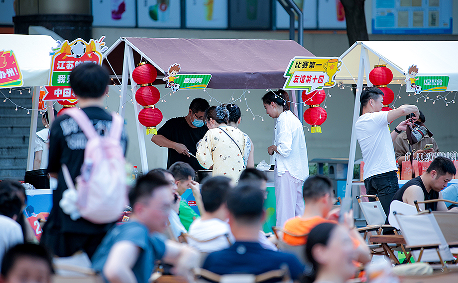 “近期,‘蘇超’聯(lián)賽持續(xù)火爆。我們以‘體育+美食+夜經(jīng)濟’為核心,融合球迷觀賽、地方美食、文化展示等內(nèi)容,豐富文體旅聯(lián)動產(chǎn)品,希望以賽事帶動消費,讓市民在觀賽之余享受美食、互動的樂趣,提升看賽體驗感。”現(xiàn)場相關(guān)負責人表示,未來,園區(qū)還將結(jié)合更多體育IP,推出類似活動,持續(xù)激活夜間經(jīng)濟活力。