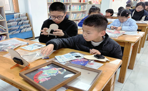 社區還將宋錦貼畫、制作算盤、拓印荷花三項傳統技藝體驗融入“樂學工坊”,讓傳統文化在指尖變得可感可觸。在宋錦貼畫活動中,孩子們用宋錦布料剪裁拼貼出一匹匹靈動的小馬,錦繡之美化作童趣盎然的手工作品。制作算盤的現場同樣熱鬧,家長和孩子一起打磨木框、穿檔釘珠,在算盤木珠碰撞的清脆聲響里,感受古代計算智慧的巧妙,也懂得了“精打細算”背后的嚴謹態度。拓印荷花環節則多了一份安靜與細致,孩子們將紙張輕輕覆在刻板上,用墨包均勻拍打,一朵朵亭亭玉立的荷花便躍然紙上,一旁的“紅管”志愿者適時講述荷花“出淤泥而不染”的故事,將藝術熏陶與自然觀察悄然結合。這些活動通過親手制作與親身體驗,加深了青少年對傳統文化的親近與熱愛。