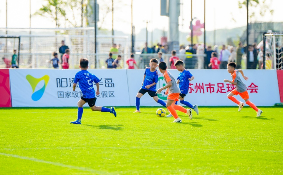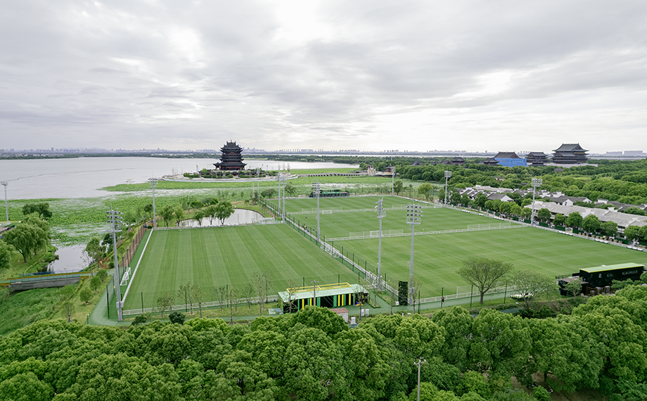 如果說新建元國際網(wǎng)球中心是“優(yōu)雅擔(dān)當(dāng)”,那么不遠處的陽澄湖半島足球公園則稱得上“活力引擎”。公園坐擁5片國內(nèi)最高標(biāo)準(zhǔn)的濱水天然草足球場,按照“世界眼光、國際標(biāo)準(zhǔn)、蘇州特色、園區(qū)品質(zhì)”打造,球場評分均達到了FIFA國際足聯(lián)90分以上的評分。